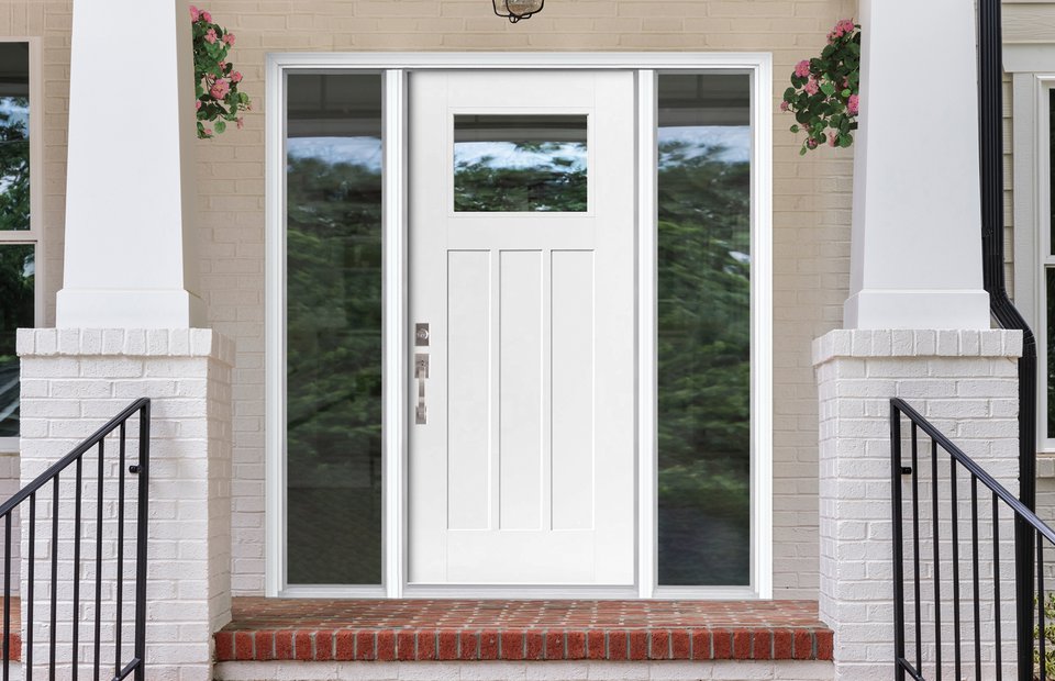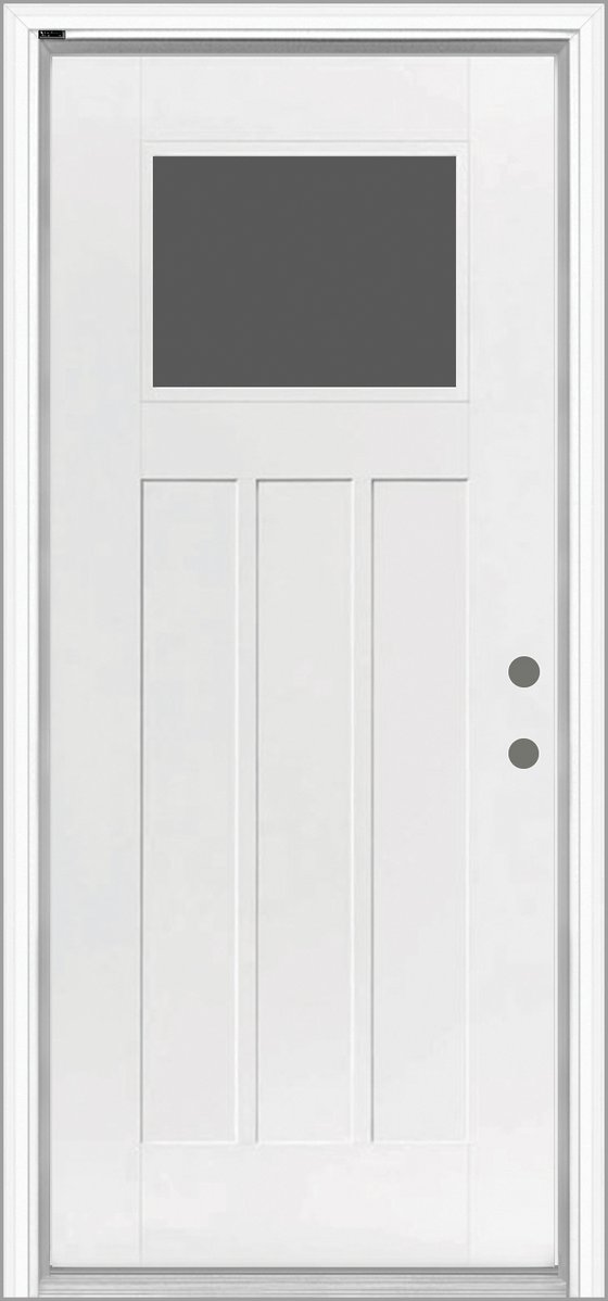 Featuring a three-panel design and smooth finish, this door captures the timeless appeal of a traditional Shaker style. Factory-glazed with 22" x 16" Clear Low-E or Transclear Low-E glass, it offers a low-maintenance solution with lasting beauty.