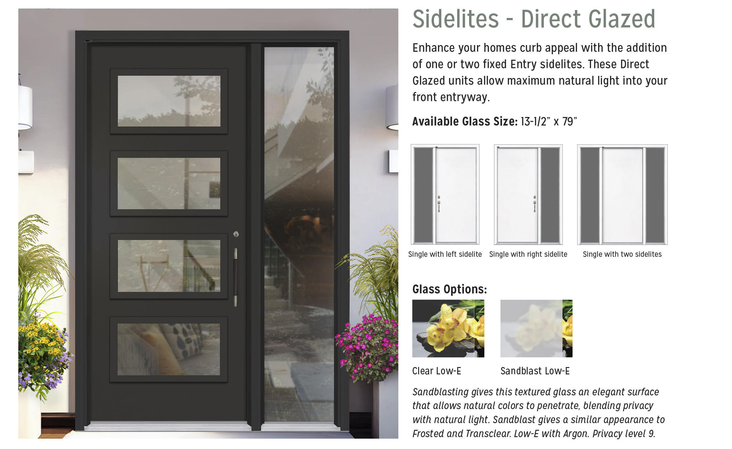 Architectural style is what gives a home its character. The Spotlite Model 842 features five 22" x 3" inserts factory installed horizontally. Available in Clear or Frosted glass.