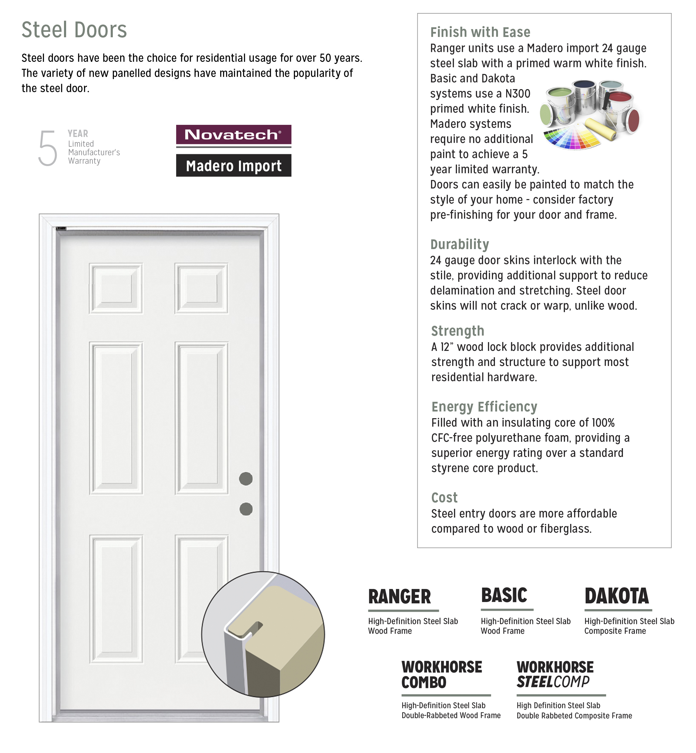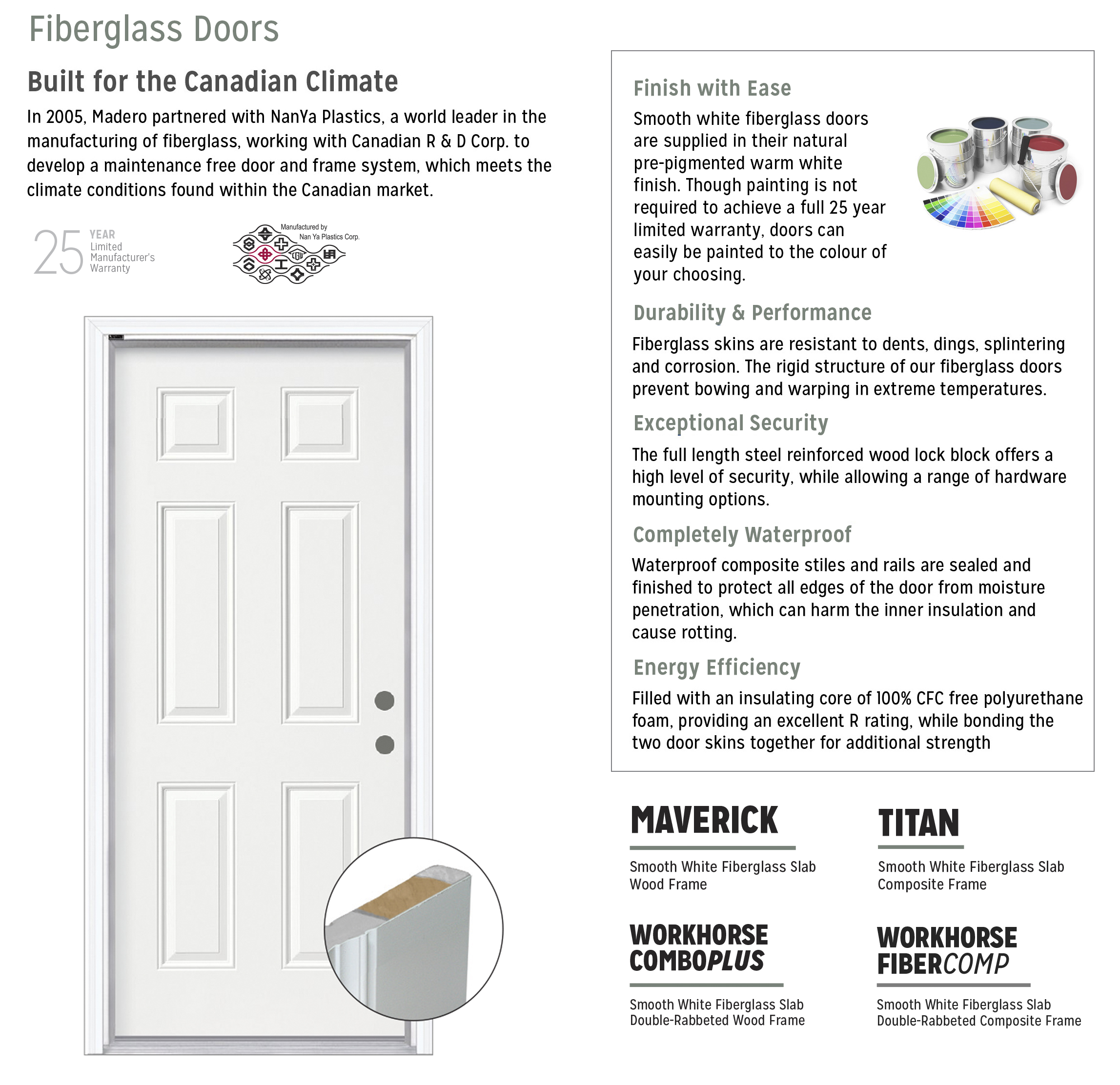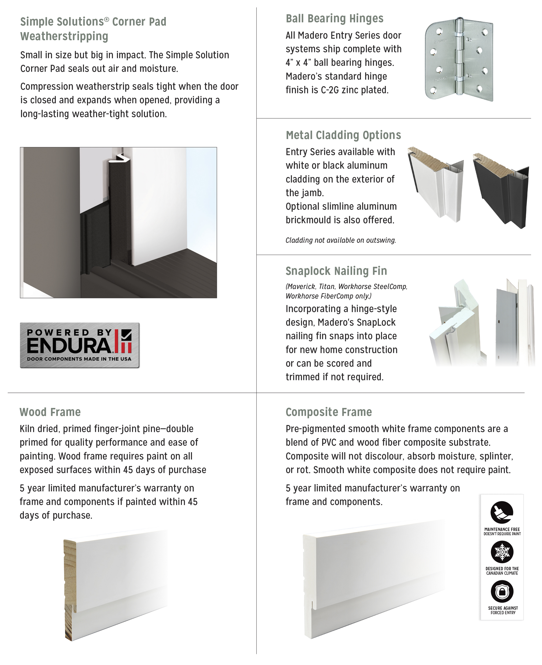 Modern designs with the functionality of the Entry Collection. Madero offers a popular line-up of Entry doors that provide the utmost street appeal. Our doors are built with quality and performance in mind; perfect for all single openings. For designer options to fit your style and budget - choose Madero.