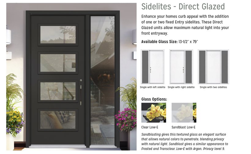 Trends come and go, good designs last. The Narrow Lite features a 7" x 64" insert installed on either the left or right hand side of your door. Available in factory installed clear or frosted glass.