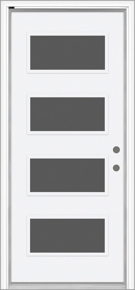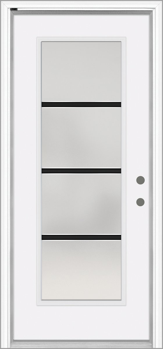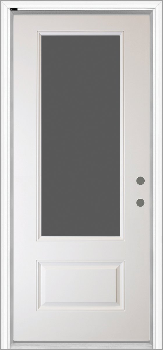 The 3/4 Lite Neulite Fiberglass Door features a uniquely brushed finish that delivers a sleek, high-end look. Choose between Frosted Low-E or Clear Low-E glass options to suit your style and privacy needs. The integrated doorglass system offers an expanded viewing area with a clean, seamless appearance—no visible screw plugs. This door represents the next level in modern design.